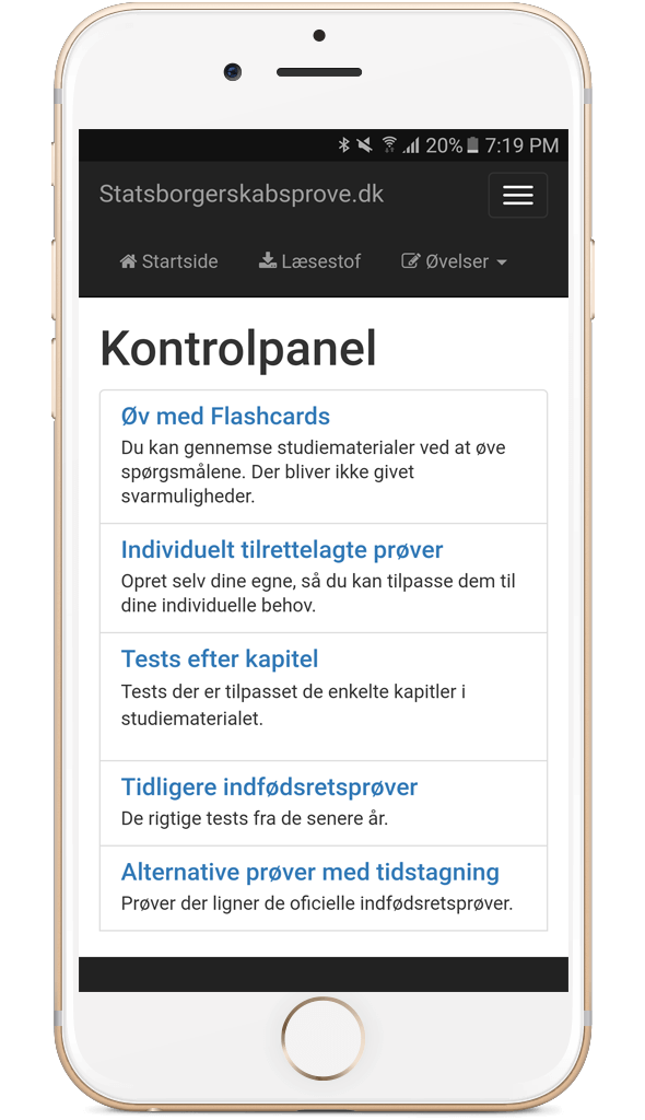 Du kan øve dig kapitel for kapitel eller tage tilfældelige tests. Tidligere officielle tests er også inkluderede.